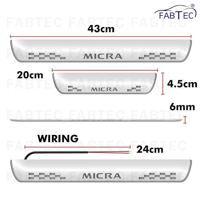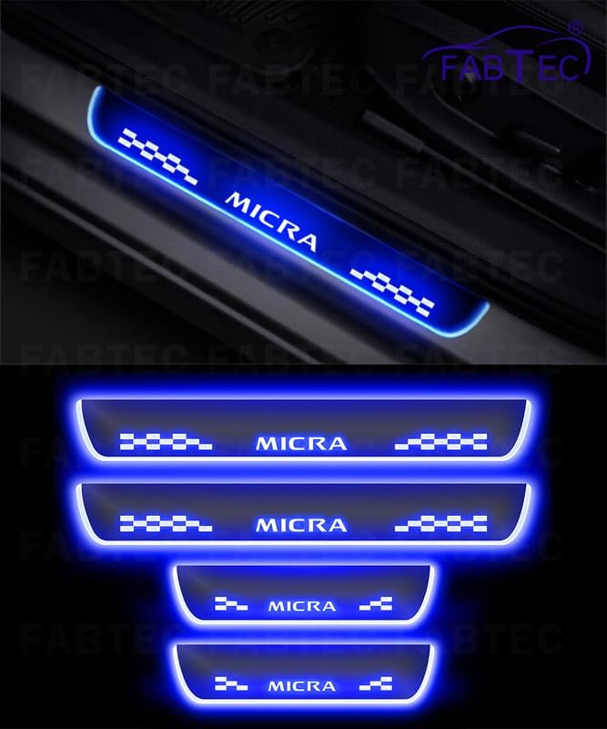 FABTEC 4PCS Car LED Door Sill Plate for Nissan Micra Blue Glow Mirror Finish Footstep Protector | Stylish Entry Guard Kit with 6 Month Warranty