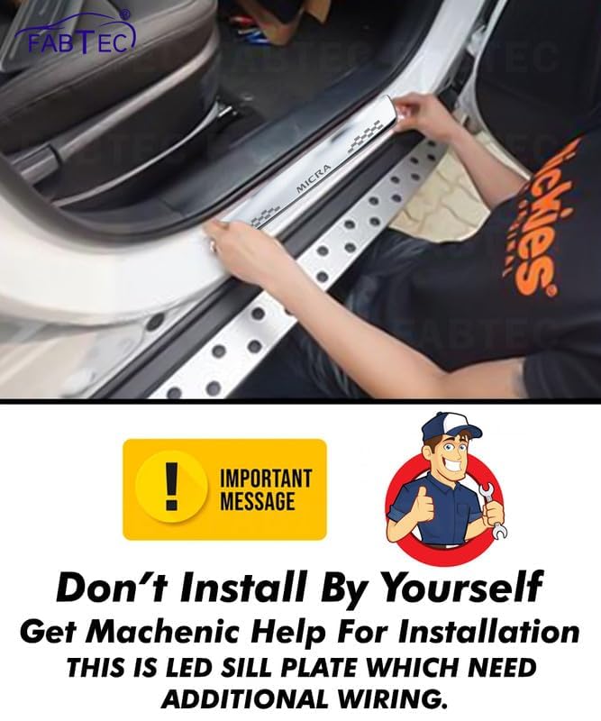 Car Door Root Step LED Sill Plates/Scuff Plate Are Made of Premium-Quality Material with Mirror Finish Which Helps in Decorating, Hides Existing Scratches and Protects Your Vehicle from Losing Its original Paint. Additional Wiring is Required For installation This Door Sill Plate Help Protect the Interior Door Sills from Scratches, Rusted or Damaged Paint also Protects the Door, Rust Free, Long Lasting, and Dustproof. Package Contents: (2Pc Big Sill Plates for Front door and 2Pc Small Sill Plates for Back Door) (Set of 4 Pcs Blue Led Sill Plate For all Car Doors) Exclusive Top-Quality Product, Comes with Company Fitted Double Sided Adhesive Tape, Connect Them only with 12V Car Battery. Extra Voltage Can Damage the Sill Plate.