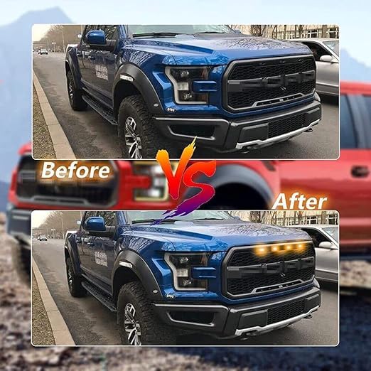 FABTEC Universal Car Grill Lights 4X4 Raptor Style | Yellow LED Daytime Running Light | Off-Road Emergency Light for All Vehicles (Set of 4)