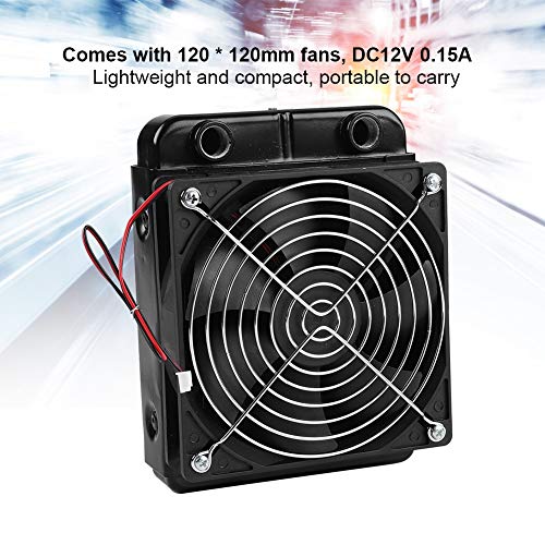 With Fan: Comes with 120 * 120mm fan , DC12V 0.15A. Pure aluminum radiator with 18 tubes, ultra high heat dissipation capacity Easy to use Lightweight and compact, portable to carry Suitable for computer CPU water-cooled, industrial variable frequency drive, head cooling, air conditioning evaporator and industrial control cabinet cooling