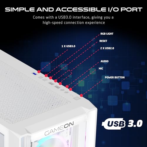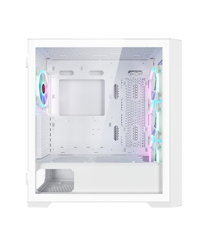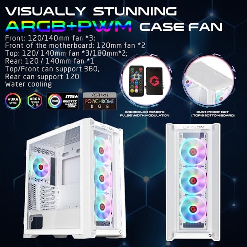 GAMEON Vortex Arctic Series Mid Tower PC Gaming Case, 120mm ARGB+PWM Lighting, 0.8mm Tempered Glass, Pre-Installed Cooling Fans, Computer Case, Filters