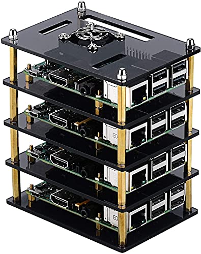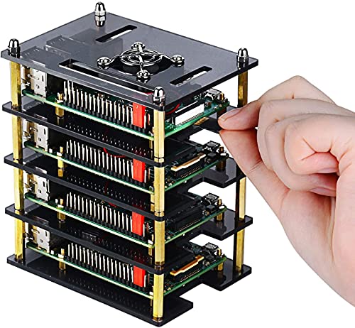GeeekPi Raspberry Pi 4 Cluster Case With Cooling Fan and Heatsink - 4 Layers Acrylic Stackable Rack for Pi 3B+, 3/2 Model B