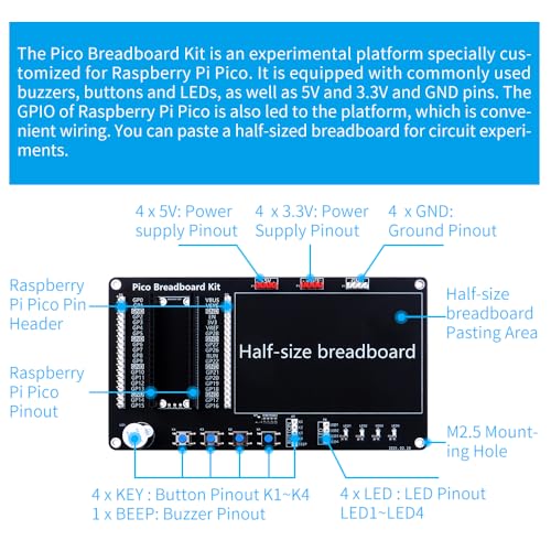 This complete kit comes with variety and quality of modules and components that you need compatible with raspberry pi pico. It is designed for Raspberry Pi enthusiasts to learn Python programming, embedded learning, through display modules and Pi Pico development boards . In addition to the demo code provided, each experiment also provides more space for learners to play. This is a very valuable learning tool! Free Detailed Manual Included.You can also download the tutorials form our wiki or contact us by Email to get documents. wiki.52pi.com/index.php?title=K-0586