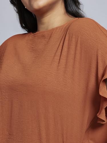 Globus Gloplus Women Round Neck Extended Ruffle Sleeves Plus Size Workwear Top