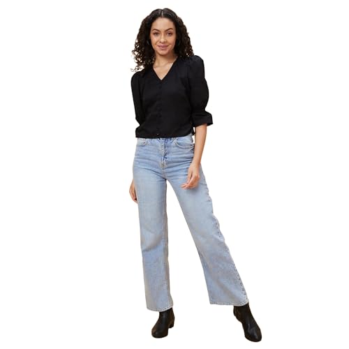 Globus Women Cotton Regular Fit Solid V-Neck Crop Top