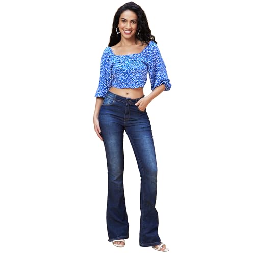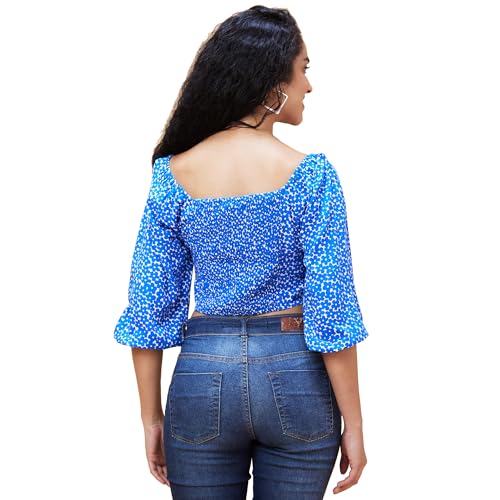 Globus Women Floral Print Square Neck Front Pleat Smocking Casual Crop Top