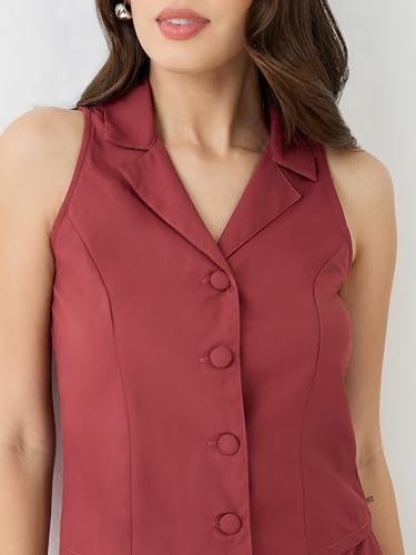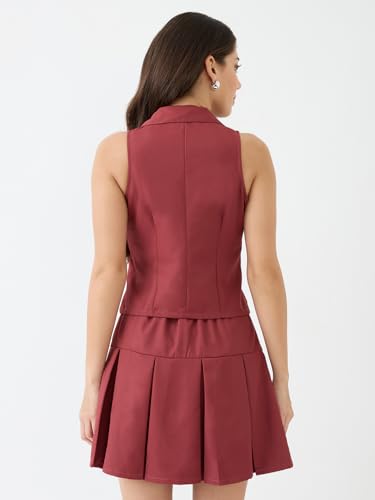 Globus Women Notch Lapel Solid Vest & Pleated Tennis Skirt Co-Ord Set