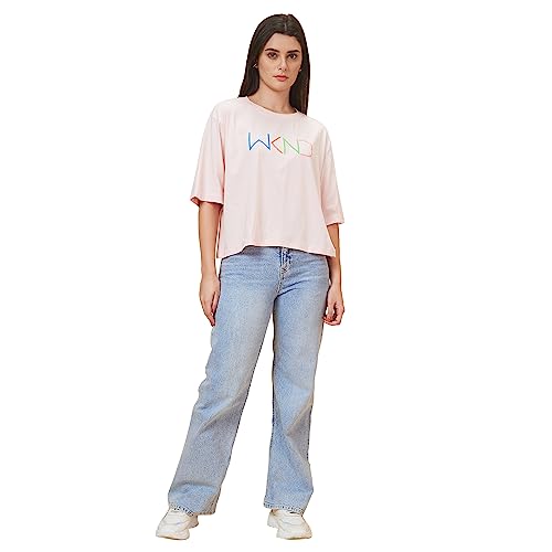 Globus Women Peach Printed Round Neck Casual Boxy Fit T-Shirt