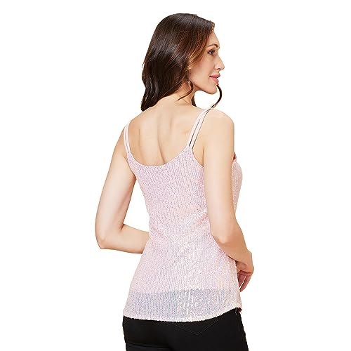 Globus Women Polyester Regular Fit Sequinned Stripes Strappy Shoulder Party Tank Top