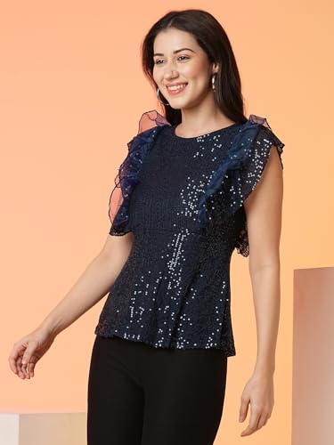 Globus Women Polyester Regular Fit Solid Pattern Sleeveless Crew Neck Party Top