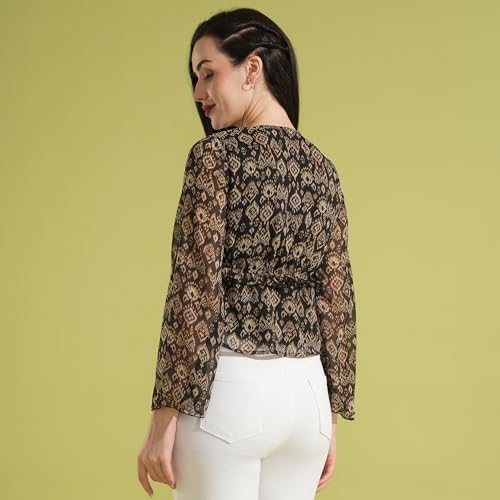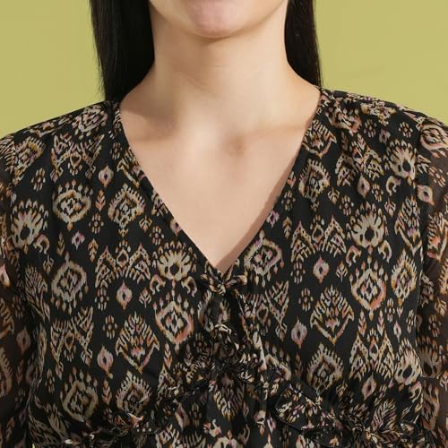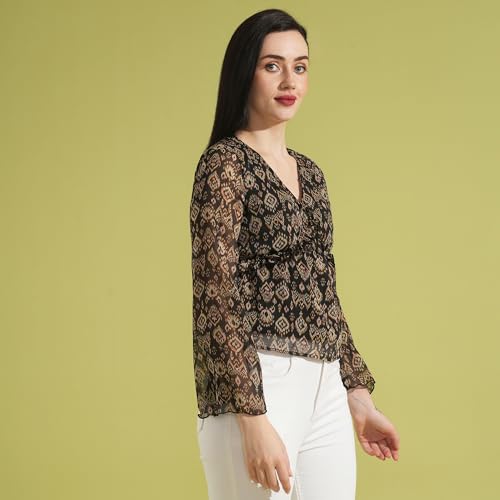 Globus Women Polyester Regular Fit V-Neck Bell Sleeves Allover Print Top