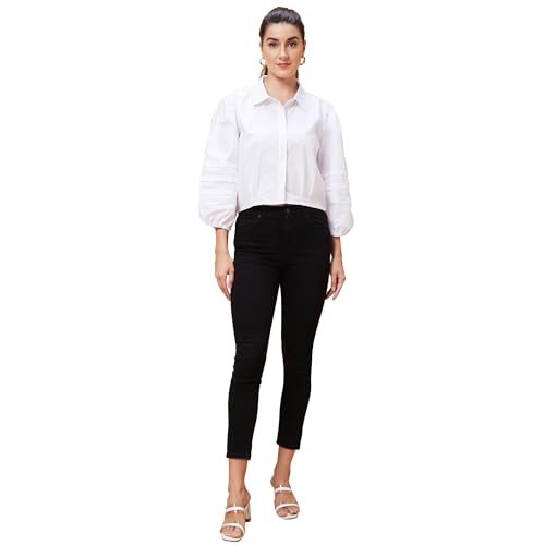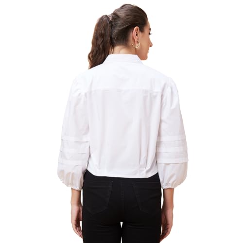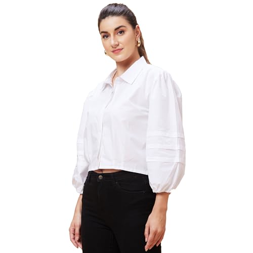 Globus Women's Cotton Regular Fit Solid Casual Shirt Style Crop Top
