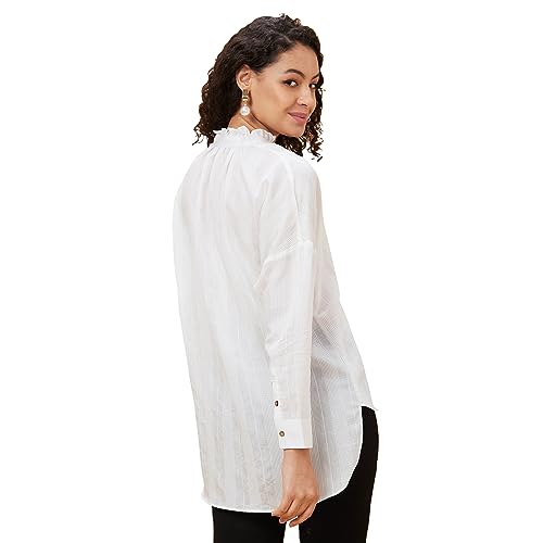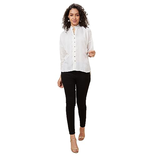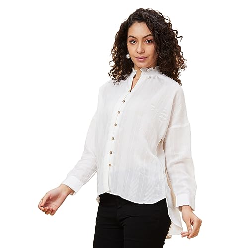 Globus Women's Polyester Regular Fit Self Design Mandarin Collar Casual Top