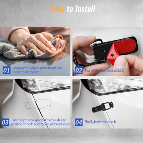 High quality material]: This car truck hook lock clip is made of high quality metal materials, excellent production technology, high strength, stable structure, high hardness, wear resistance, corrosion resistance, rust resistance, impact resistance, not easy to deformation, with a long service life. Our auto bumper clip hasp is ideal for you. [Universal fit]: The bumper holder clip can be applied to the front and rear bumpers, trunk, panel, hatch, hood and other positions. It is universal fasteners fenders holders kit fit for most vehicles, including cars, SUVs, trucks, RV and so on. [Quick release] : Our front rear bumper fastener kit has a built-in spring that allows it to be removed quickly, easily and frequently without the need for any tools. The bumper quick release keeps the panel, trunk, tailgate, hatch and bumper tightly together, reducing replacement costs and making it the most economical and straightforward way to maintain your car. [Easy to use]: The bumper security kook lock clips comes with a back adhesive, which can be easily affixed to the car body, easy installation, and does not require drilling or any tools. [Decorative function]: Auto bumper clip hasp is also a good decoration
