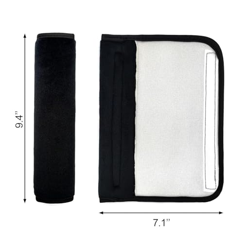 PROVIDE SUPPORT - Our car seat belt cushion protect and relieve shoulder pressure, protects neck from seatbelt irritation, suitable for adults women and children. GOOD QUALITY FABRIC - The surface is made of high-quality polyester, and the inner lining is a composite non-woven fabric and sponge, soft, skin-friendly, comfortable, easy to clean and not easy to deform. EASY TO USE - Easy to install and easy to use, wrap the car seat belt pad around the seat belt, slide to fit you when you fasten your seat belt, it'll be fixed there nicely. MULTIPUPOSE - These seat belt covers are suitable for all car seat belts, also suitable for items with shoulder straps such as strollers, backpacks, computer bags, travel bags, golf bags, accordion basses, etc. ALSO KNOWN AS - Seat belt pads harness pads pram strap covers backpack shoulder pad automotive seat belt cushion pad cover safety belt strap luggage pad for children adults youth kids