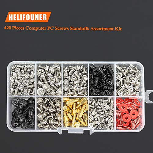 HELIFOUNER 420 Pieces Computer Standoffs Screws Assortment Kit for 2.5" SSD, Hard Drive, Computer Case, Motherboard, Fan Power Graphics