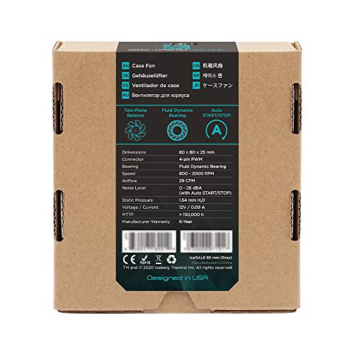 Rigid Brass Housing with Fluid Dynamic Bearing to reduce noise levels and assure silent operation With a speed range of 800 to 2000 RPM, you'll get an adequate performance 29 CFM airflow Anti-vibration pads are built into the outside corners of the fans to absorb and remove vibrations with two-plane balance to maintain stability in your fan Utilizing our Auto START/STOP Function reduce power consumption and decrease heat Equipped with 4-Pin PWM Connector with 0 – 26 dBA