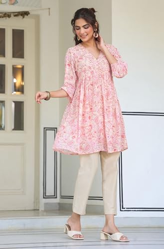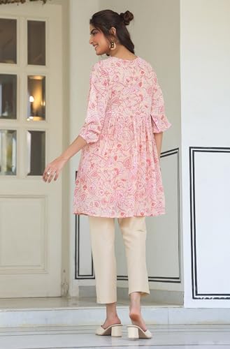 Janasya Women's Georgette Floral Printed Gathered Tunic