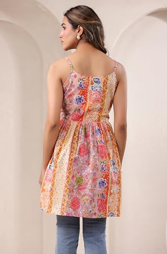 Janasya Women's Multicolor Pure Cotton Floral Printed A-line Tunic