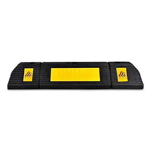K T I® 600mm Rubber Wheel Stopper for Block Car Wheels to Control Damage with Installation Kit, Protect Vehicle Bumpers and Garage Walls (Including 3 Screw Superiority) (125Wx600Lx105H) Pack of 2