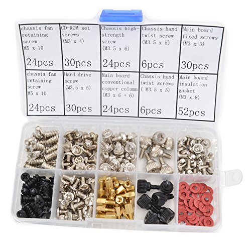 Kalanution 250pcs Personal Computer Screws & Standoffs Set Assortment Kit for Mother Board, Computer PC Spacer Screws Assortment Kit for Hard Drive Computer Case Motherboard fan power graphics