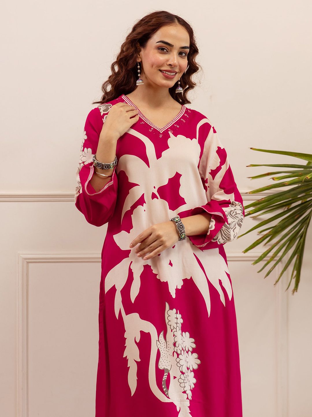 Buy this stylish KALINI Floral Printed V-Neck Straight Beads and Stones Kurta With Palazzos at Marincart Nepal. This product offers great quality and value. Perfect for those looking for the latest trends in fashion. Get yours now at unbeatable prices.