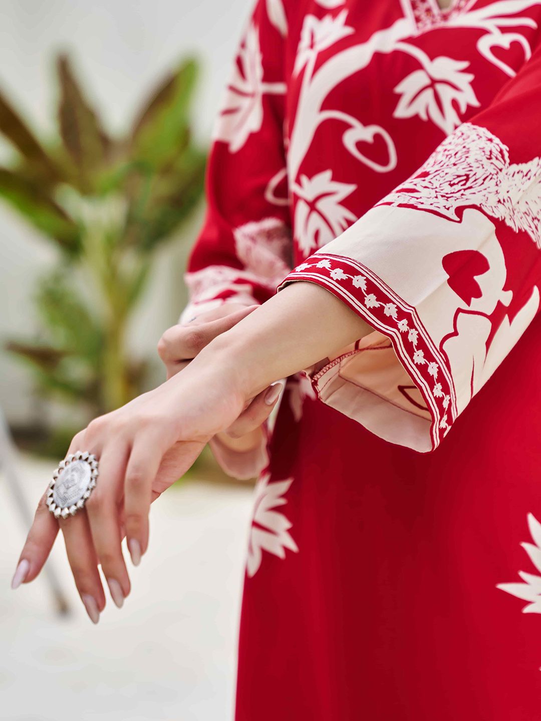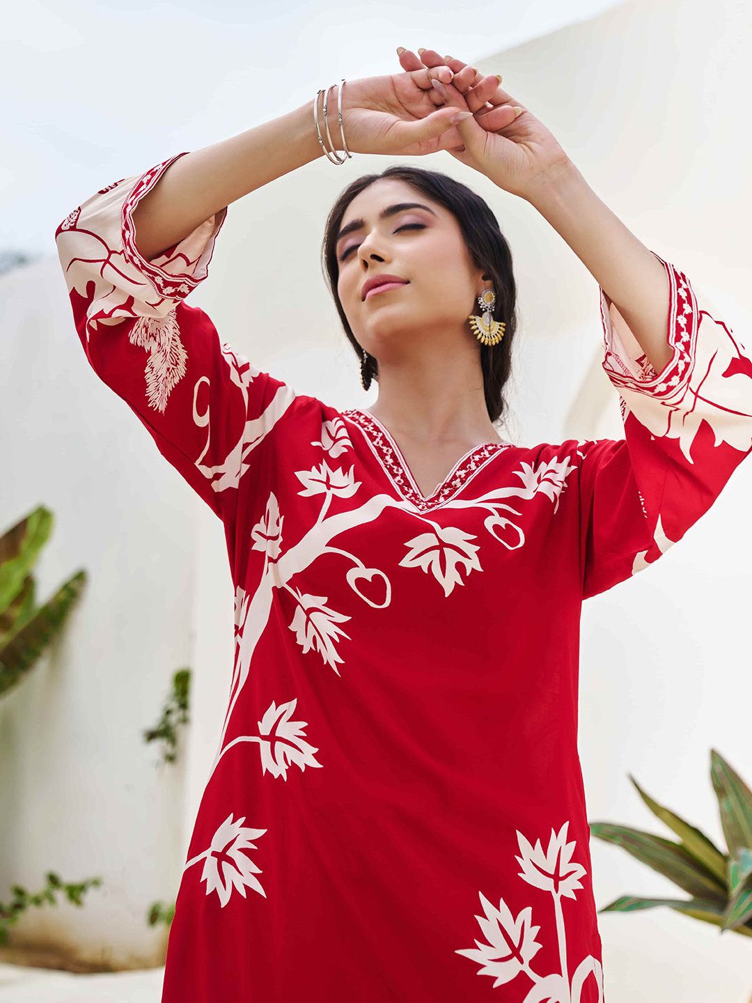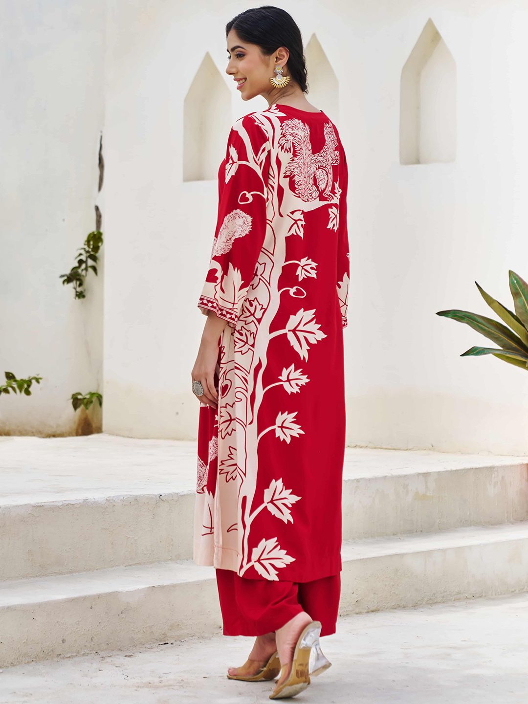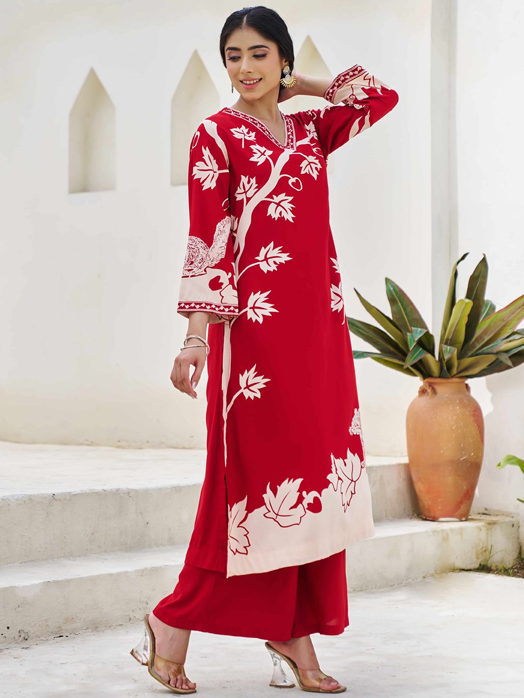 KALINI Floral Printed V-Neck Straight Sequinned Kurta With Palazzos
