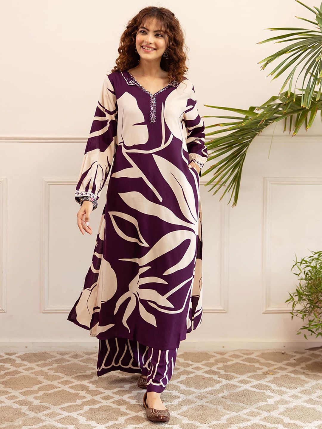 KALINI Women Floral Printed Regular Sequinned Kurta with Palazzos
