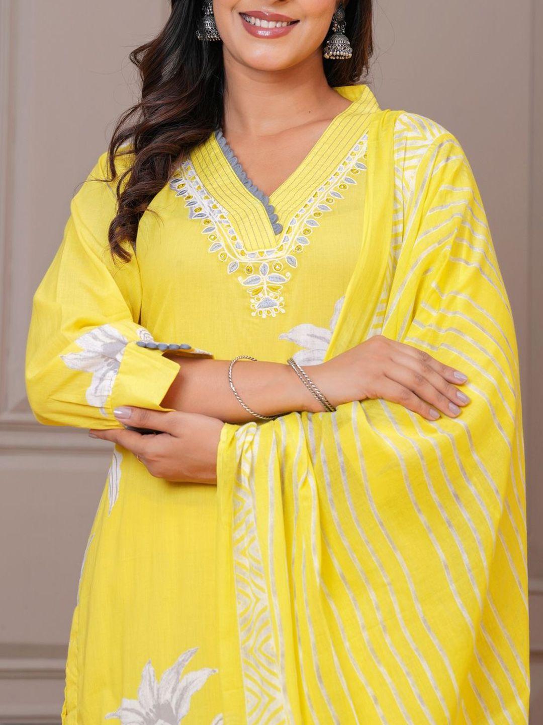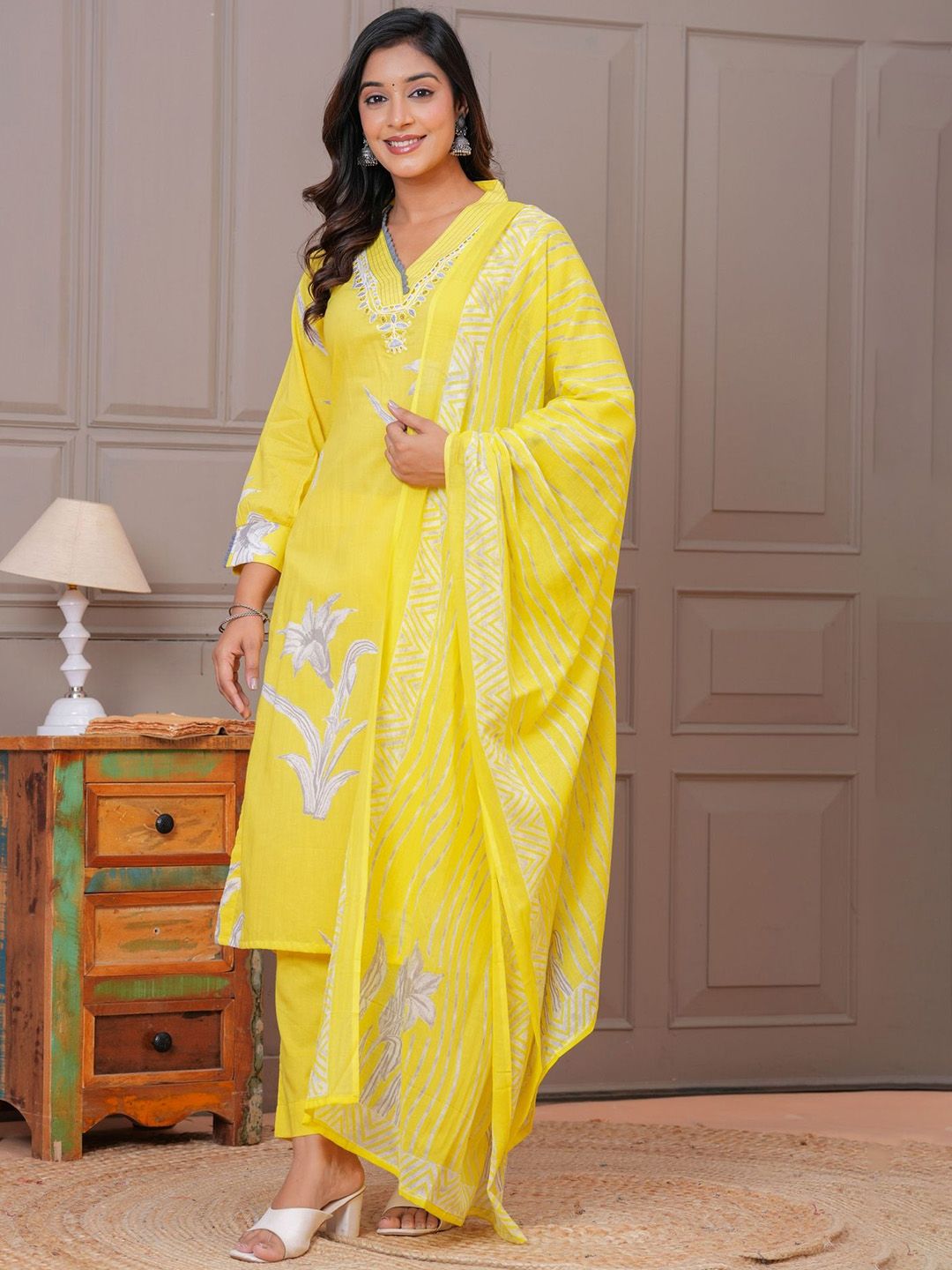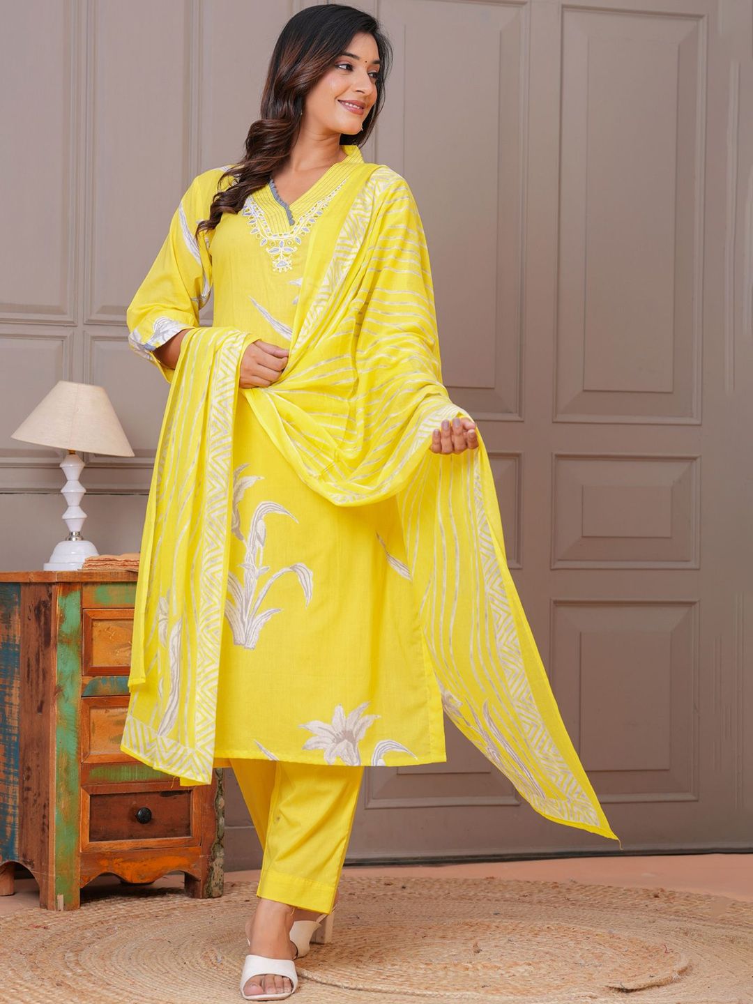 Kanahari Women Floral Embroidered Pure Cotton Kurta with Trouser & Dupatta