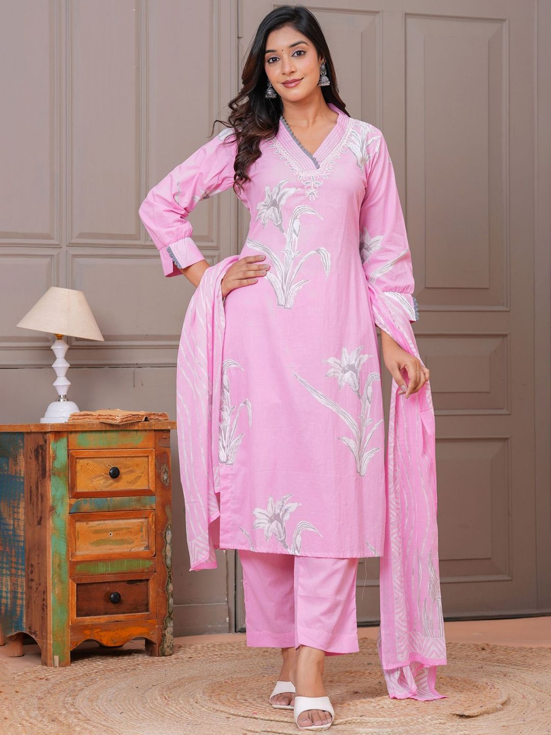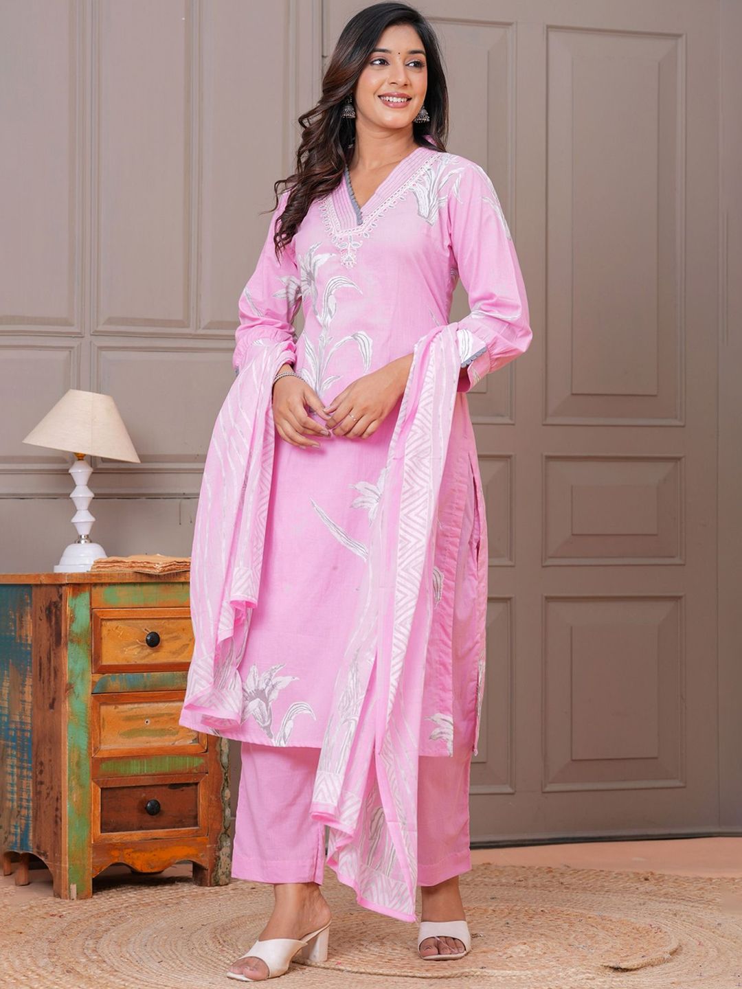Kanahari Women Floral Printed Pure Cotton Kurta with Trousers & Dupatta