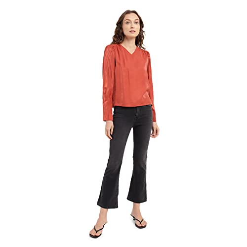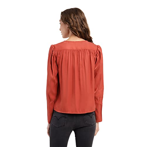 Levi's Women's Cotton Fitted Solid Puff Sleeve V-Neck Sheen Top