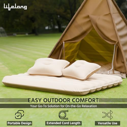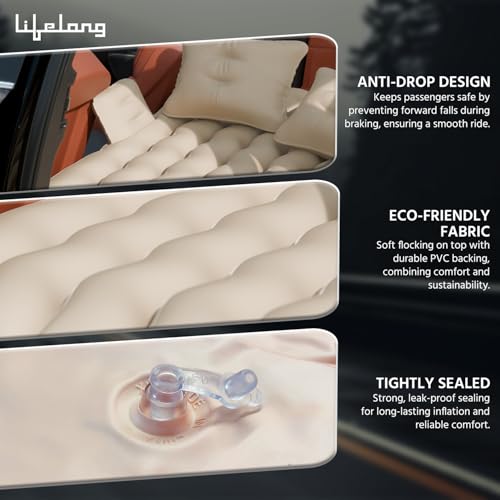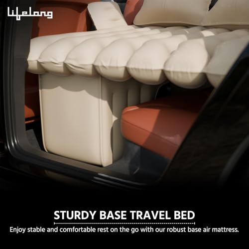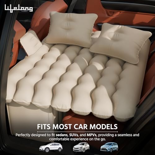 Lifelong Car Inflator Bed with Pump & 2 Air Pillow- Air Bed for Car, Quick Inflatable Back Seat Bed, Portable Car Mattress, Compact Car Bed for Camping, Road Trip, Adults & Kids (LLCIB03, Beige)
