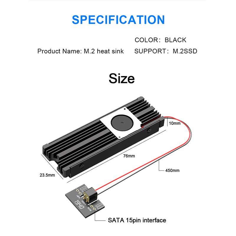 ?Designed for Desktop PC?- Specially designed for desktop computers, this M.2 SSD heatsink compatible with M.2 2280 SSD, perfectly fit for Samsung 850 EVO, 860 EVO, 960 EVO, 970 EVO, 950 PRO, 960 PRO, 970 PRO, etc. ?Double-sided cooling?- Aluminum alloy-Groove design, greatly increase the heat dissipation area, with 10°C - 30°C cooling effect (Varies depending on the environments), cool your M.2 SSD to a safe temp to avoid overheating and throttling, improving the performance of your computer. ?Easy to Install and Operate? - With double-sided clip design, 6 adjustable height screws, suitable for M.2 SSD of various heights, stable installation, better protection of your M.2 SSD. ?Unique Nano Thermal Pad?- Advancing Gene thermal pad is made from Nano Silicon Grease Material, with good thermal conductivity ability. Soft enough and good ductility, compatible with uneven surfaces of the M.2 SSD. Low viscosity, with no damage to the SSD warranty label. ?Fine Workmanship?- Main body material: Aluminum alloy, silver plating (Helps eliminate static electricity), anodic oxidation surface treatment. Dimensions: 3 x 0.95 x 0.4in., net weight: 1oz., minimum installation height requirement: 12mm.