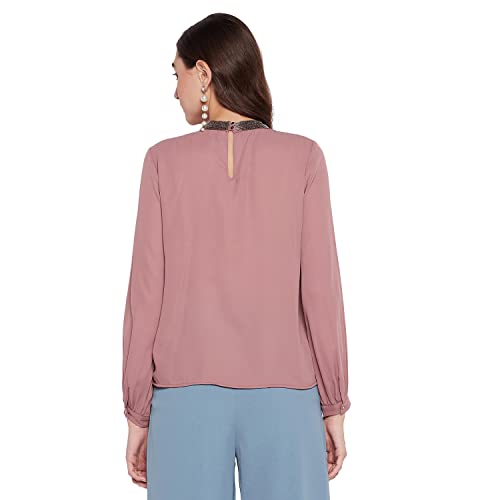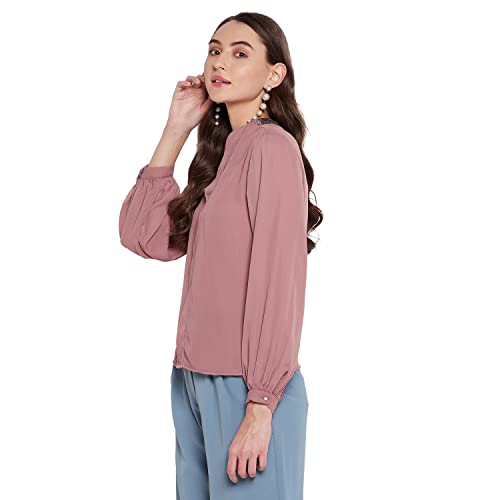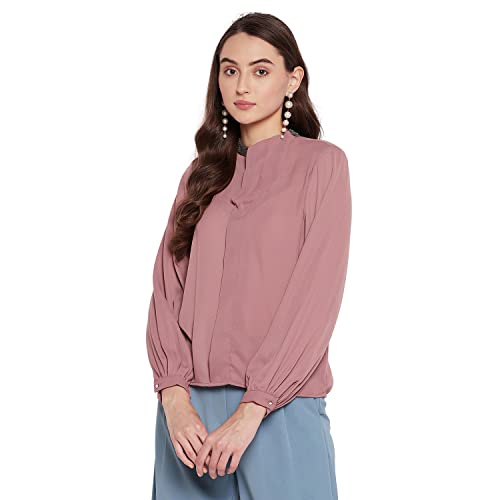 Madame Chocolate Brown Solid Chiffon Shirt for Women