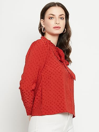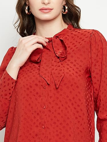 Madame Tie-Up-Neck Full Sleeve Solid Rust Shirts for Women