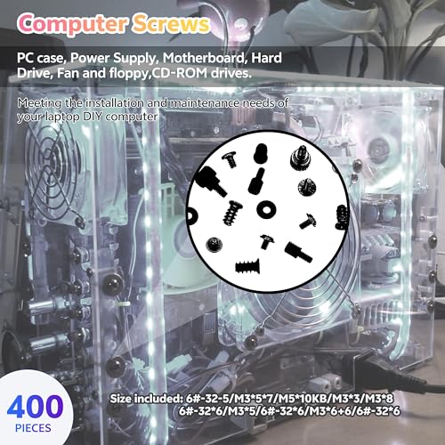 Matell 400Pcs Computer Screws Standoffs Kitfor Universal Motherboard, HDD, SSD, Hard Drive,Fan, Power Supply, Graphics, PC Case for DIY instaliiation and Repair