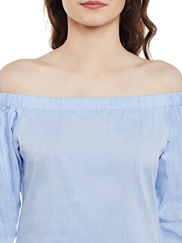 Miss Chase Women's Blue Off Shoulder 3/4 Sleeved Solid Top