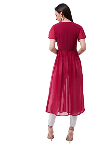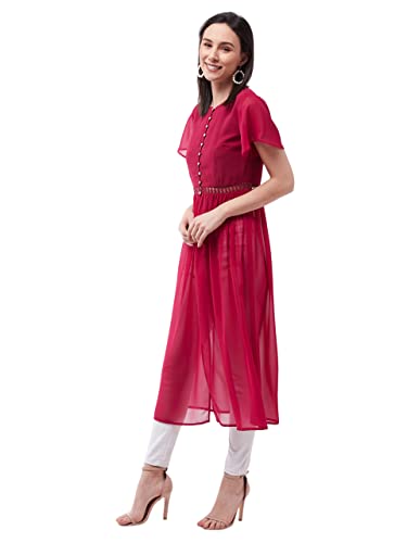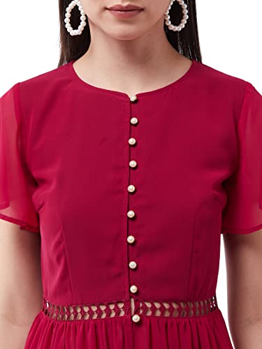 Miss Chase Women's Dark Pink Round Neck Flared Sleeve Solid Gathered Maxi Top