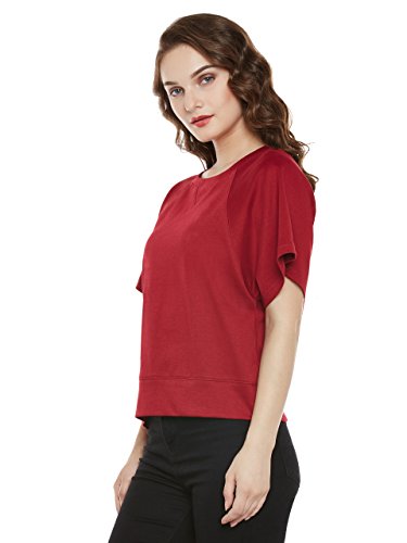 Miss Chase Women's Maroon Ribbed Boxy Top