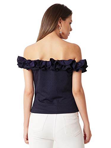 Miss Chase Women's Navy Blue Off-Shoulder Pearl Ruffled Top