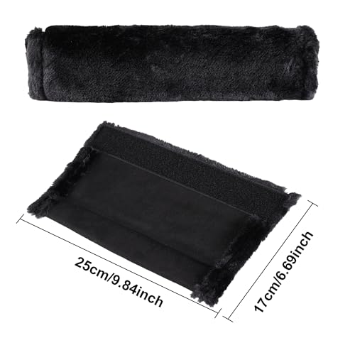 ?INCLUDE - Set of 2Pcs Car Seatbelt Shoulder Pad.Color:Black ? MATERIAL - Made of high quality Soft Faux Sheepskin Wool,Soft and Skin-friendly, Provide the most convenient driving experience ever.No lint,and No smell,safety for our Skin. ? MULTIPURPOSE - This Seat belt pad can be used for all car and trunk for More Comfortable Driving,can also be used on your handbag, Carmera Backpack,baby diaper bag, golf bag, luggage which has a strap, and anyplace else you want padded comfort. ? INSTALLATION - Each seat belt cover has a piece of durable special cloth sticker on the underside that you can simply open, fold over the seat belt and then close again. No tools required. ?HIGHLY RECOMMENDED - Highly recommended for drivers who feel uncomfortable using the seatbelts for a long time.Children would love to wear their seatbelts too.