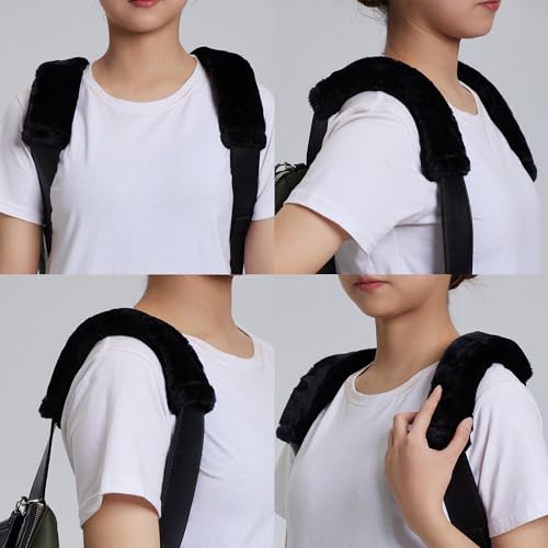 Moonet Auto Seat Belt Shoulder Pad, Soft Faux Sheepskin Wool Universal Seatbelt Cover for More Comfortable Driving,Multipurpose for Handbag Carmera Backpack Straps,2pc?Black?