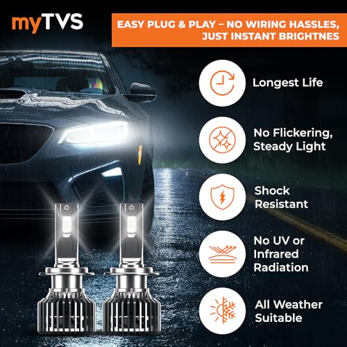 myTVS LED Car Headlight Bulbs |152W Super Bright 6000K Cool White LED Conversion Kit | High Power Waterproof Headlamps 15200 Lumens| Plug & Play, Long-Lasting, Universal Fit, 2-Year Warranty LED8-H7