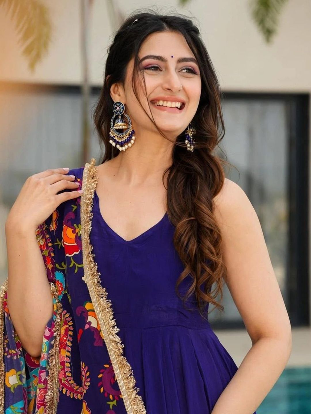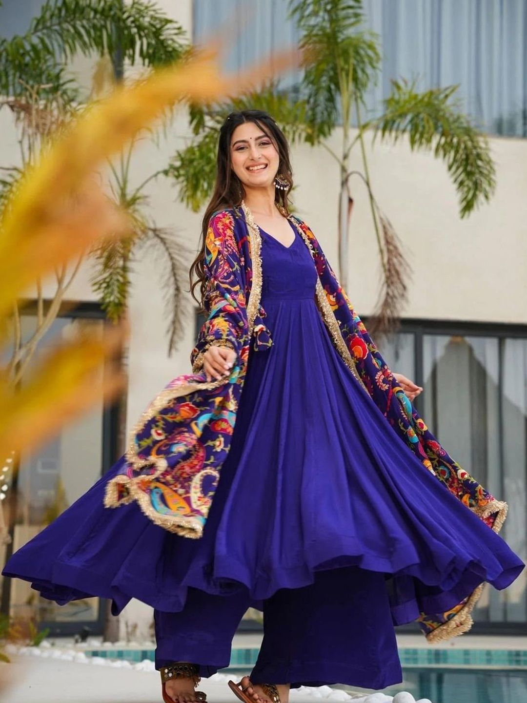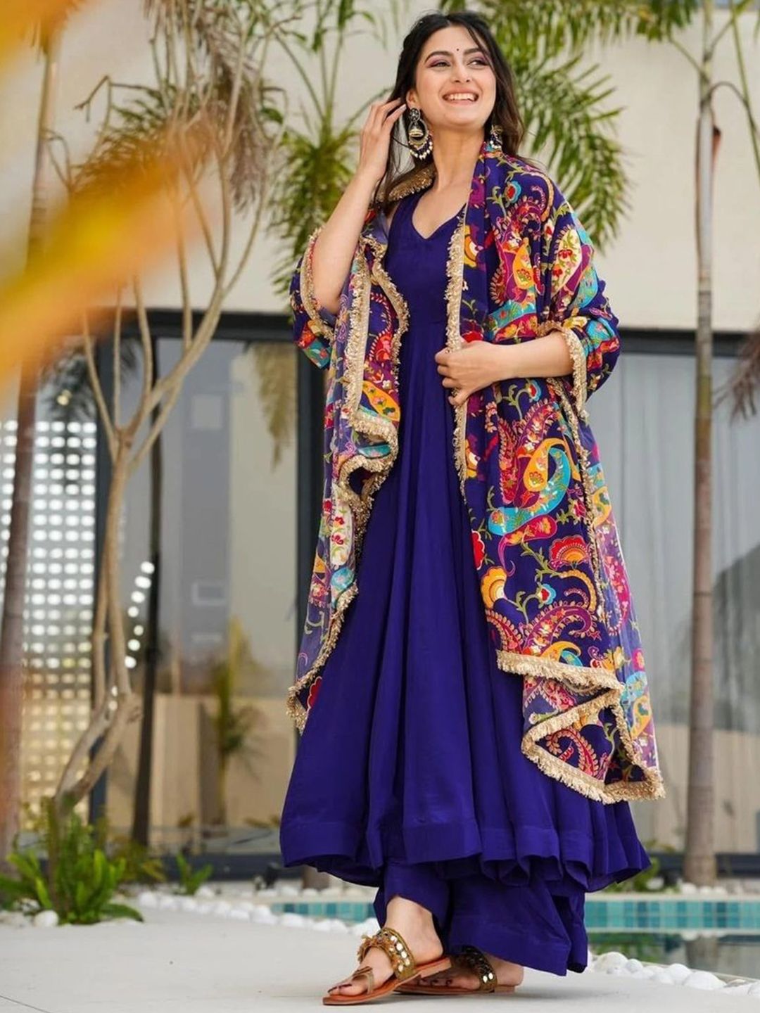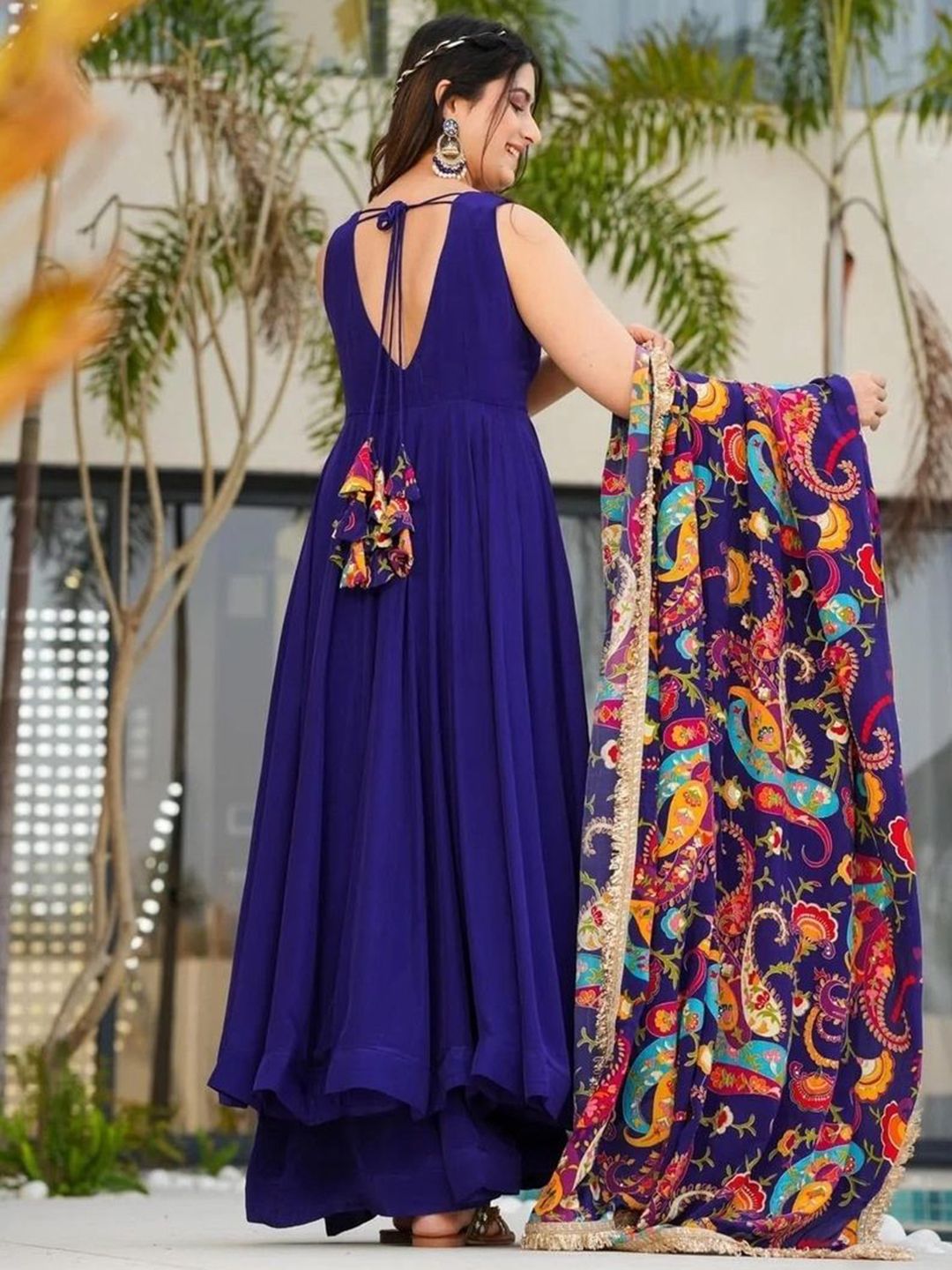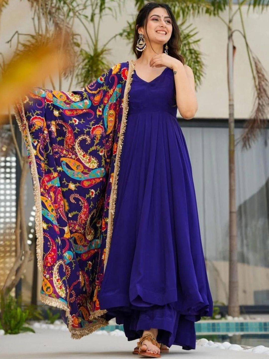 NARI DREAM Women Ethnic Motifs Solid Satin Anarkali Kurta with Palazzo & Dupatta