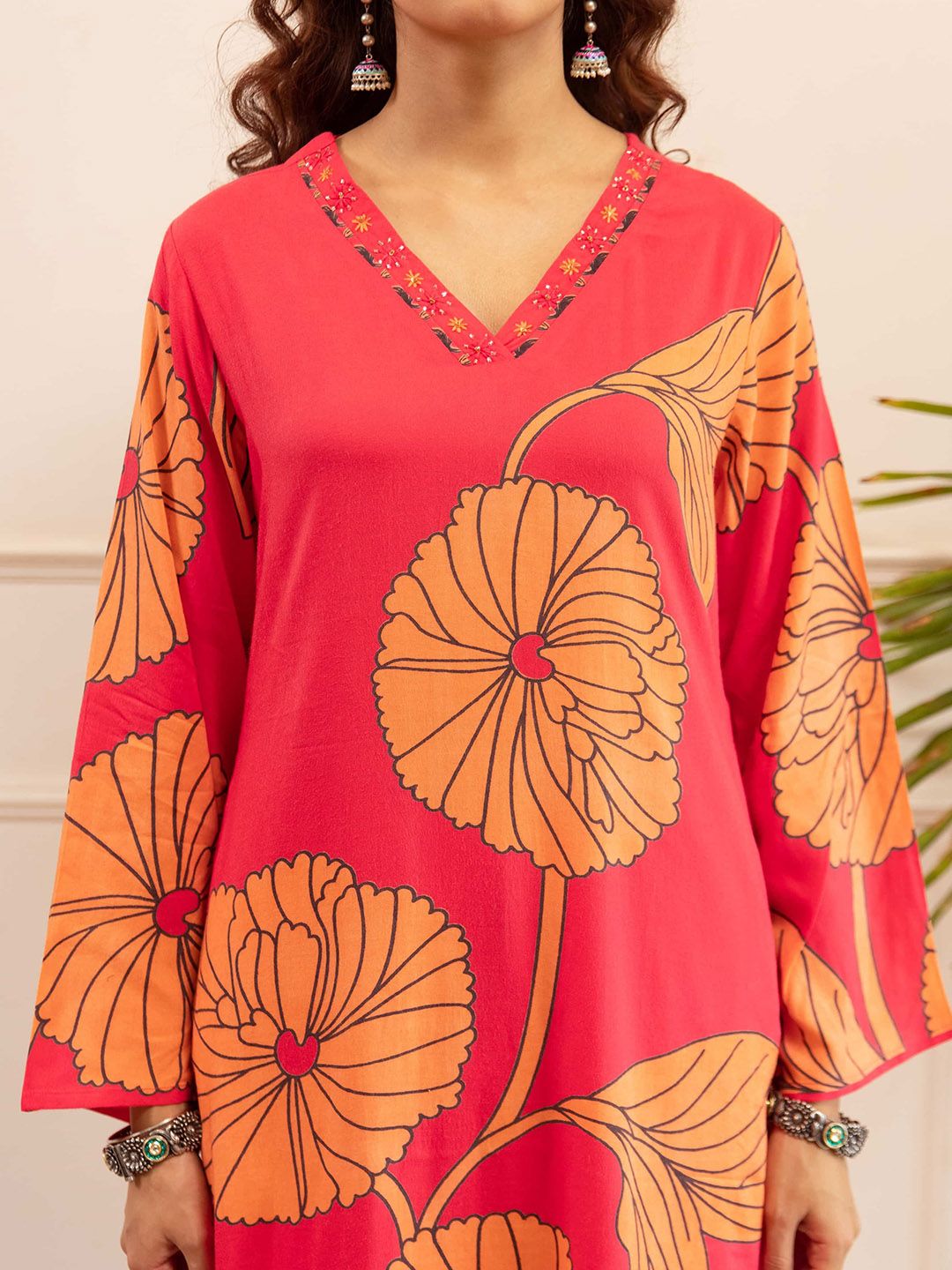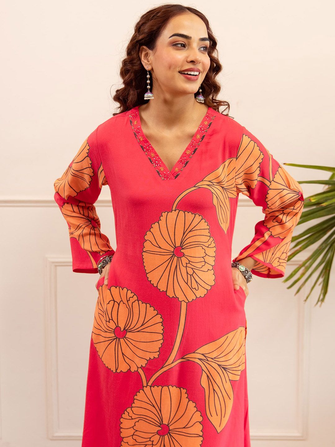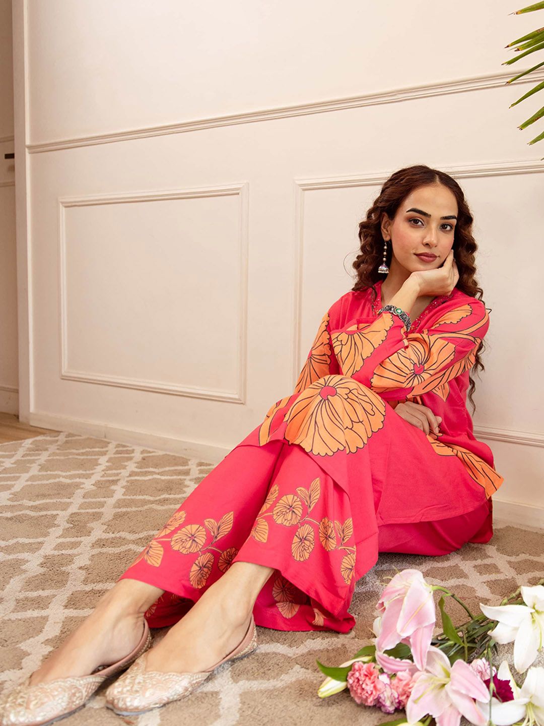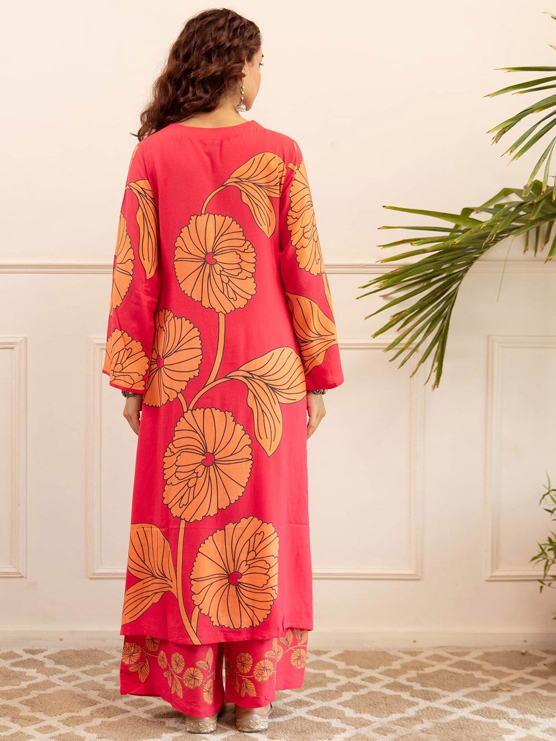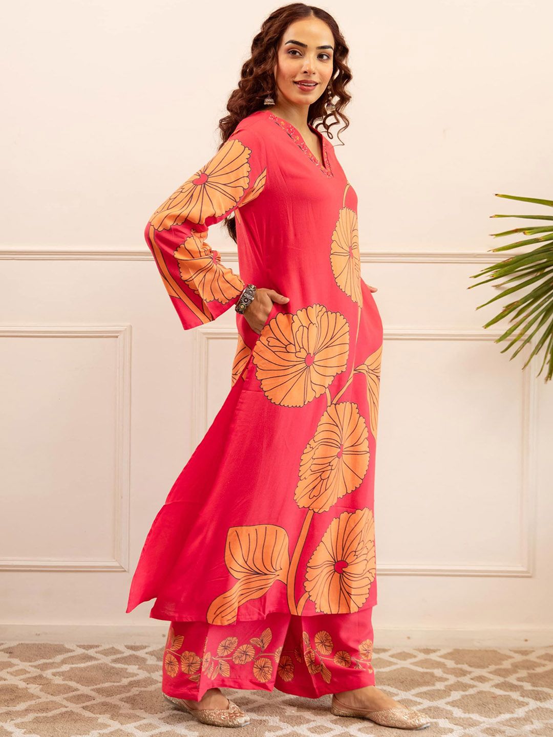 Nehamta Women Floral Printed Regular Sequinned Kurta with Palazzos