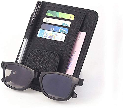NIKAVI NIKAVU Universal Fit Car Sun Visor Organizer Holder PU Leather Multi-Function Glasses, Pen and Card Clip Holder (Multicolor)