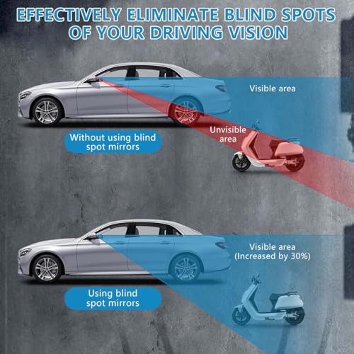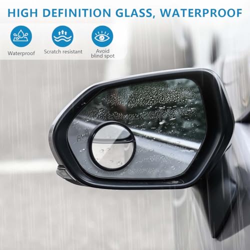 Driving Safety: Our convex mirrors improve driving safety by eliminating blind spots, you can increase your sight area when overtaking, changing lanes or reversing to avoid potential accidents or collisions. Suitable for cars, SUV, trucks, motorcycles, and more. HD Glass: Our convex blind spot mirror is HD glass, waterproof, with plastic protection on the outer layer, which is not easy to damage or scratch hands. 360 Degree Adjustable Mirror: The blind spot convex mirror can be manually adjusted and swung 360 degrees, you can adjust the field of view outside the vehicle according to your driving situation. Easy to Install: No other tools are required, and it can be installed easily in a short time. Step 1: Wipe the car mirror clean. Step 2: Tear off the adhesive film on the back of blind spot mirror. Step 3: Stick the blind spot mirror to the car mirror. Step 4: Adjust the angle and complete the installation. Package Includes: 4 Pack 2 inch round car blind spot mirror. Enough quantity to meet your family needs, or replacement needs. Best gift for your friends and parents.