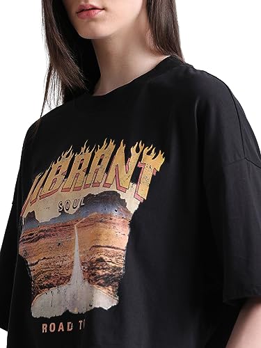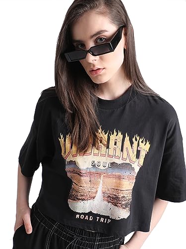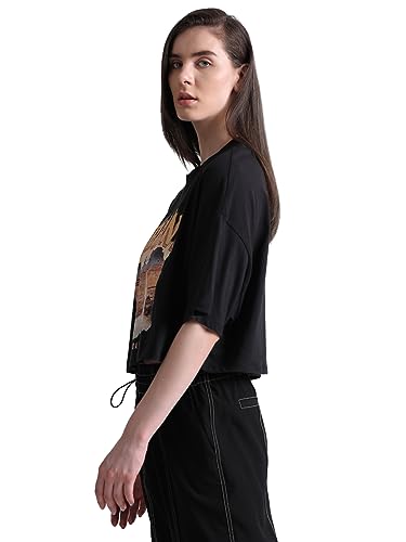 ONLY Graphic Printed Extended Sleeves Crop Boxy Knitted Pure Cotton T-Shirt