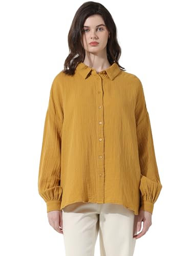 ONLY Oversized Striped Spread Collar Cotton Casual Shirt