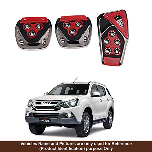 Oshotto 3 Pcs Non-Slip Manual CS-375 Car Pedals kit Pad Covers Set Compatible with Isuzu MU7 (Red)